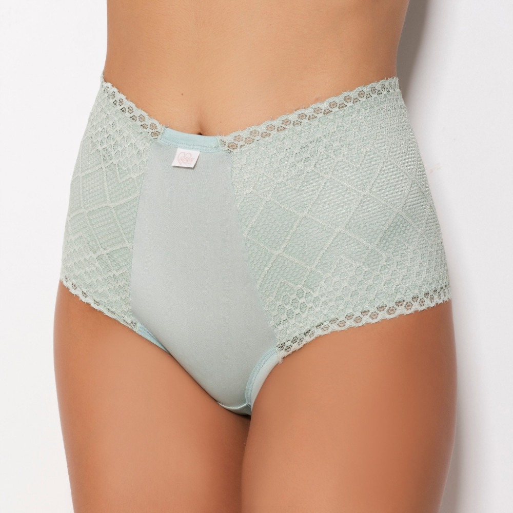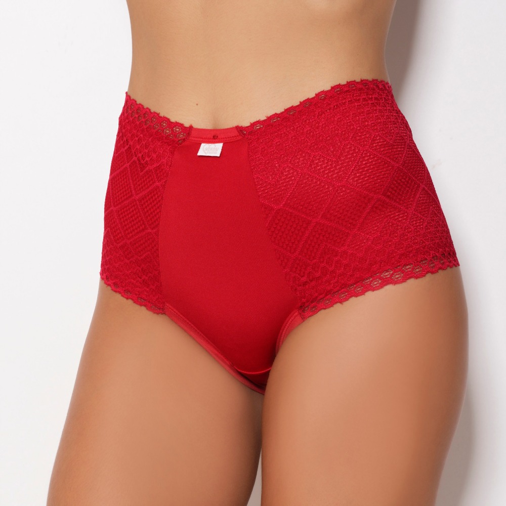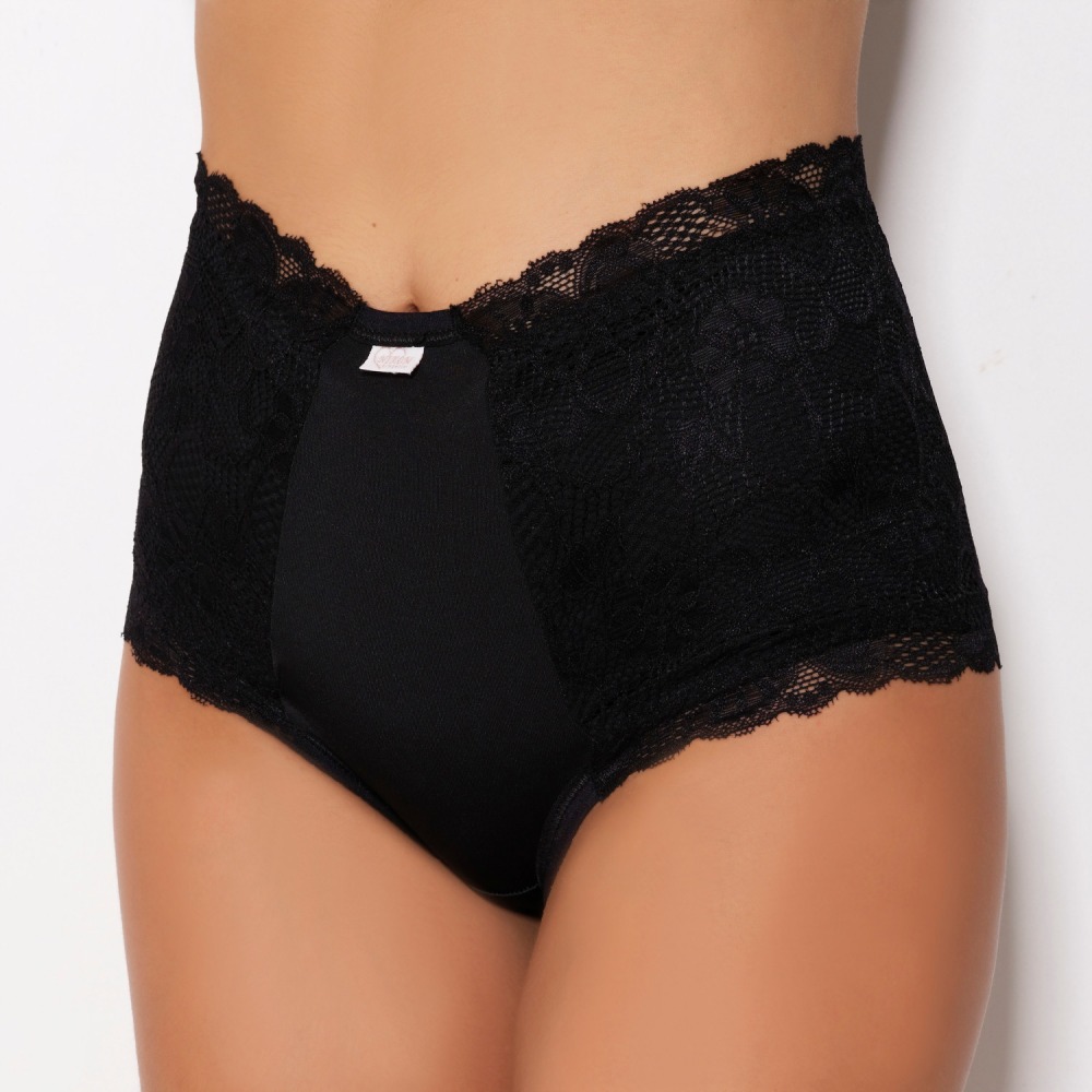 Calça confeccionada em microfibra de poliéster lisa com laterais revestidas em renda. Modelo de cós alto que modela a cintura e disfarça as gordurinhas. Não marca e é confortável ao toque.