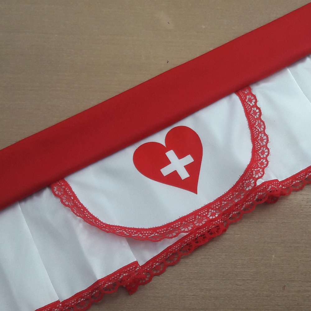 Fantasia Enfermeira Emergência confeccionada em tecido com estampa, renda trabalhada no avental e tule importados. Possui sainha com avental e cropped frente única com amarração nas costas. Modelo ideal para mulheres ousadas que gostam de usar coisas diferentes e surpreender a pessoa amada.