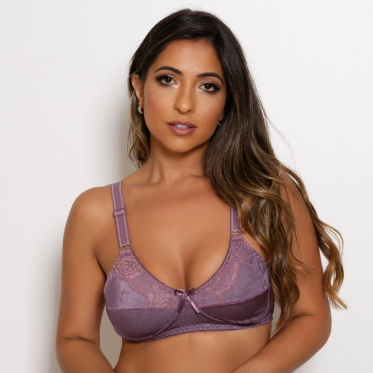 Sutiã com bojo e arco, modelo pala inteira com um laço no entreseios, alças com regulagem de metal e fechamento por colchete duplo. Essa peça possui bojo bolha nos tamanhos P e M.